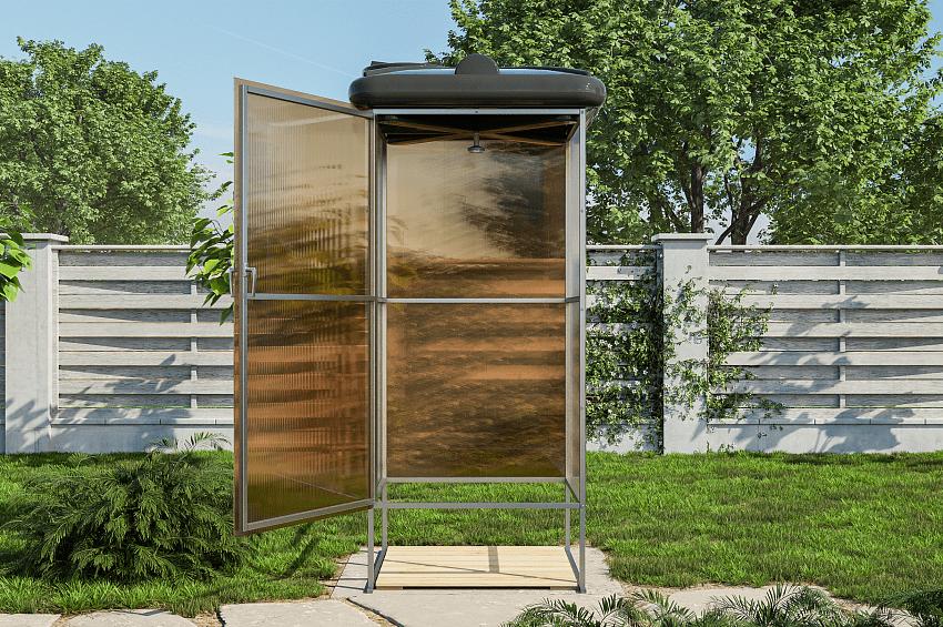 ОСОБЕННОСТИ. Большой бак. Оцинкованный каркас предотвращает появление коррозии, в отличие от покрытия грунт-эмалью. Простая сборка.